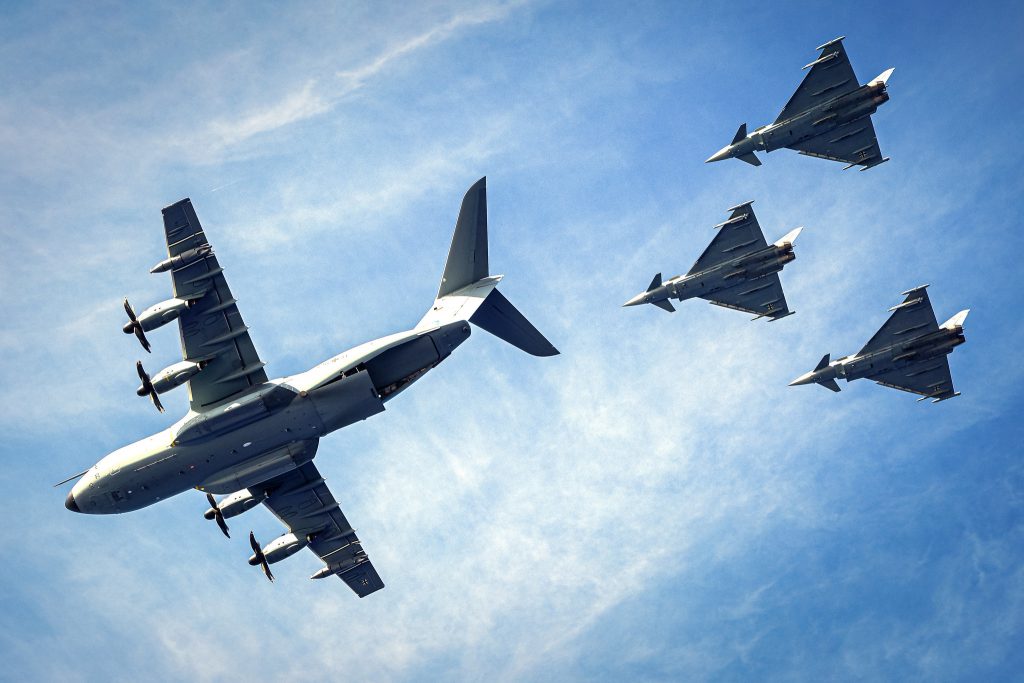 - Deutscher Beitrag: Deutschland beteiligt sich mit vier Eurofighter-Kampfjets und einem Tankflugzeug A400M.
